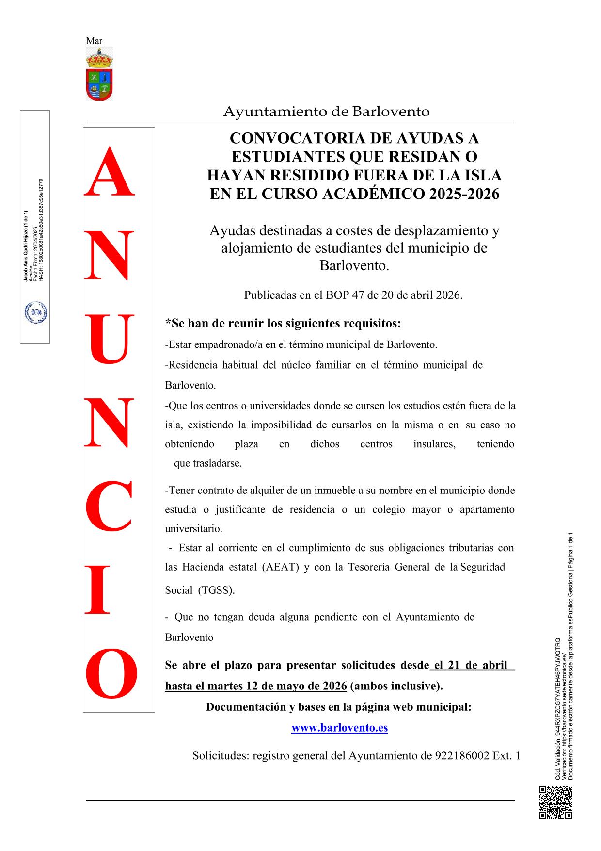 CONVOCATORIA DE AYUDAS A ESTUDIANTES QUE RESIDAN O HAYAN RESIDIDO FUERA DE LA ISLA EN EL CURSO 2025-2026.